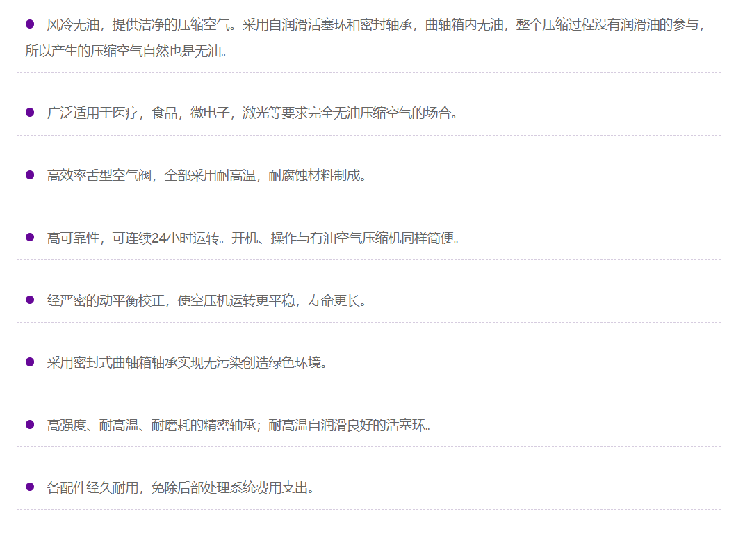 經(jīng)嚴(yán)密的動平衡校正,使空壓機(jī)運(yùn)轉(zhuǎn)更平穩(wěn) ,壽命更長。采用密封式曲軸箱軸承實(shí)現(xiàn)無污染創(chuàng)造綠色環(huán)境。高強(qiáng)度、耐高溫、耐磨耗的精密軸承;耐高溫自潤滑良好的活塞環(huán)。